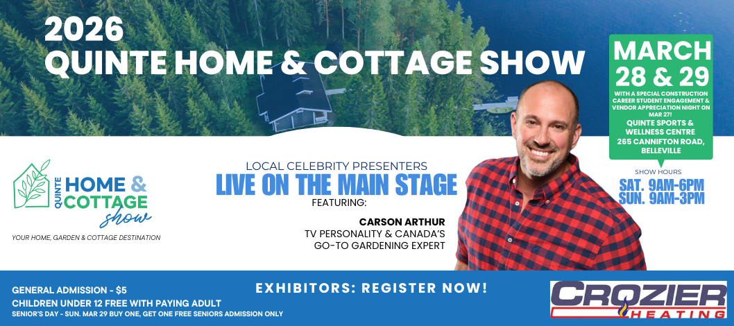 Welcome to the Exhibitor Registration page. The Quinte Home & Cottage Show takes place March 28 & 29, 2026 at the Quinte Sports & Wellness Centre and is the destination for home & cottage consumers. We have two full arenas ready to showcase your brand, product or service. We always try to reinvent ourselves at the Show and have exciting new plans this year including a back to basics local theme.
